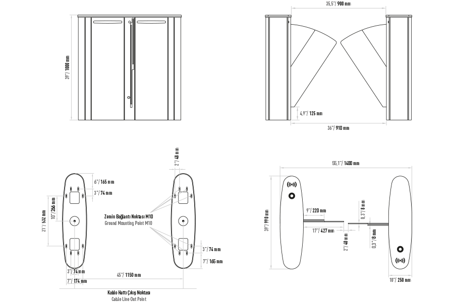 Fonksiyonlar: Mikroprosesör kontrol ile iki yönlü çalışma ve bir kişinin geçişine izin verme, elektronik geçiş hafıza örneği ile bir geçiş tamamlanmadan gelen diğer sinyalleri hafızaya alır ve kanatları kapatmadan geçişe izin verir.