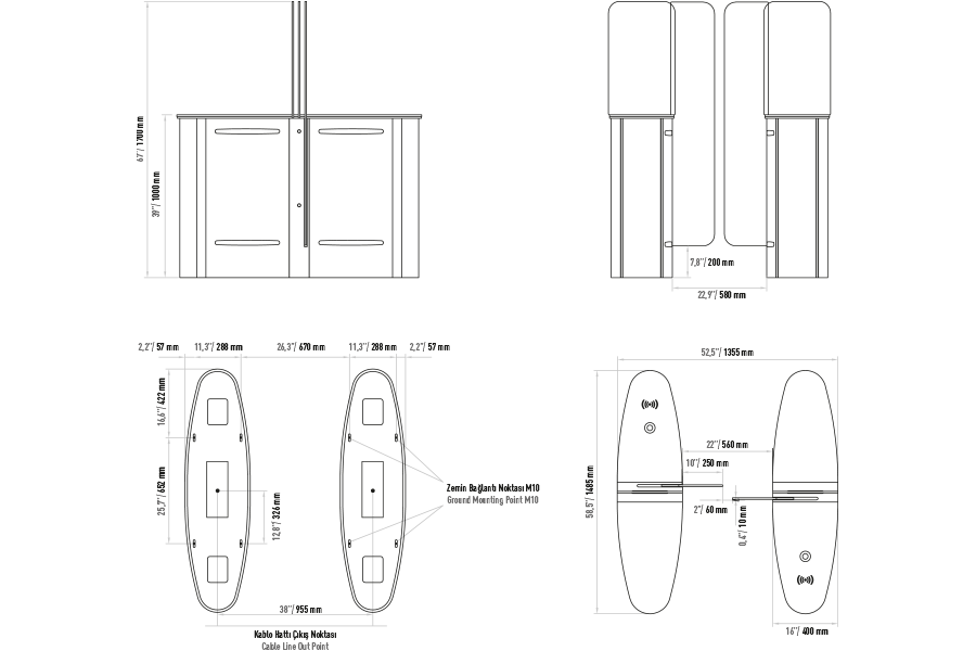 Fonksiyonlar : Mikroprossesör kontrol ile iki yönlü çalışma ve bir kişinin geçişine izin verme, elektronik geçiş hafıza özelliği ile bir geçiş tamamlamadan gelen diğer sinyalleri hafızaya alır ve kanatları kapatmadan geçişe izin verir. Ops: 2 adet RS232 ve 1 adet RS 485 haberleşme portu.