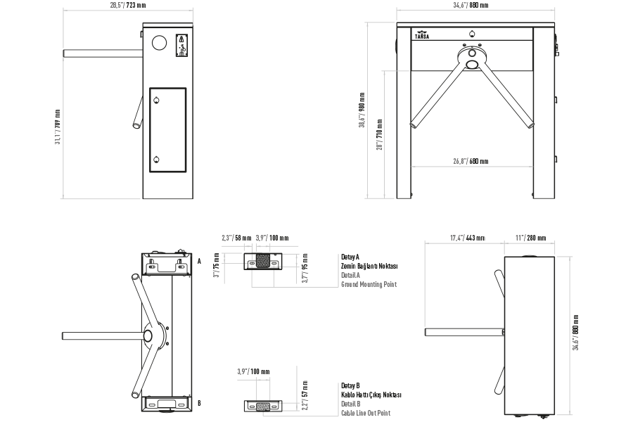 Tansa LTT-303J Turnike Teknik Çizim